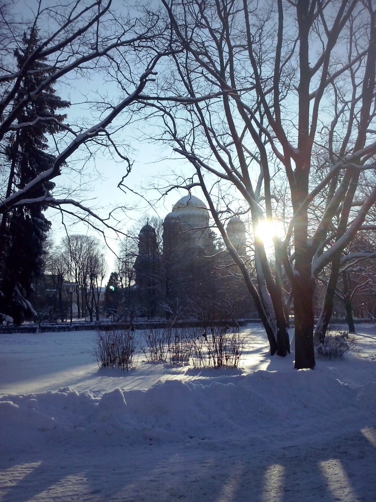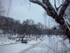 Nachdem es kurz vor Weihnachten nicht so aussah, als würde der Winter in Riga in nächster Zeit Einzug halten – es herrschte mit +8C und neblig-trüber Aussicht bestes Novemberwetter –, gingen die Temperaturen gegen Jahresende rasant dem Nullpunkt entgegen und noch weiter in den Keller. Die bereits bestehende Puderzuckerschicht auf den Dächern der Stadt wurde kurz nach Neujahr zu einer echten, geschlossenen Schneedecke und die Temperaturen pendelten sich bei -10C bis -15C ein. Mit der zentralasiatischen Kälte der Mongolei von unter -40C kann – und will! – ich dann doch nicht mithalten.