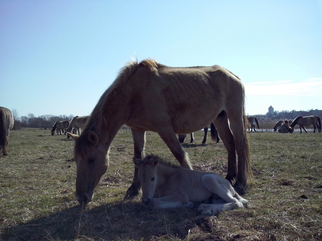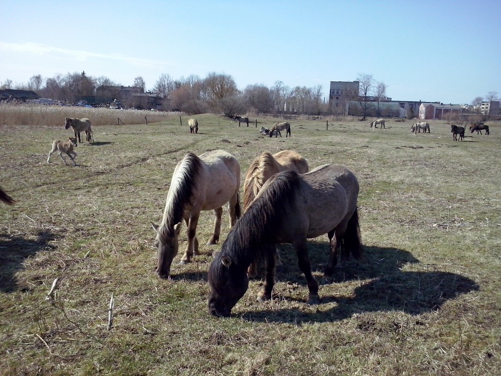 Inzwischen ist auch der April schon wieder fast halb rum. Die Monatsmitte markiert auch den Abschied meines Chefs im Rigaer Informationszentrum. Am vergangenen Montag sind wir deshalb nach Jelgava, eine Stunde südlich der lettischen Hauptstadt, zu einem letzten gemeinsamen Ausflug aufgebrochen. Das Wetter zeigte sich von seiner besten frühlingswarmen Seite und so besuchten wir unter anderem die Wildpferde, die auf einer Insel in der Lielupe hinter Schloss Jelgava leben. Wie wild diese Pferde tatsächlich sind, kann ich nicht sagen, aber einige Zäune waren zu sehen und im Winter dürften die Tiere auch nicht gänzlich auf sich angewiesen sein. Besonders interessiert an Menschen waren sie auch nicht, geschweige denn scheu.