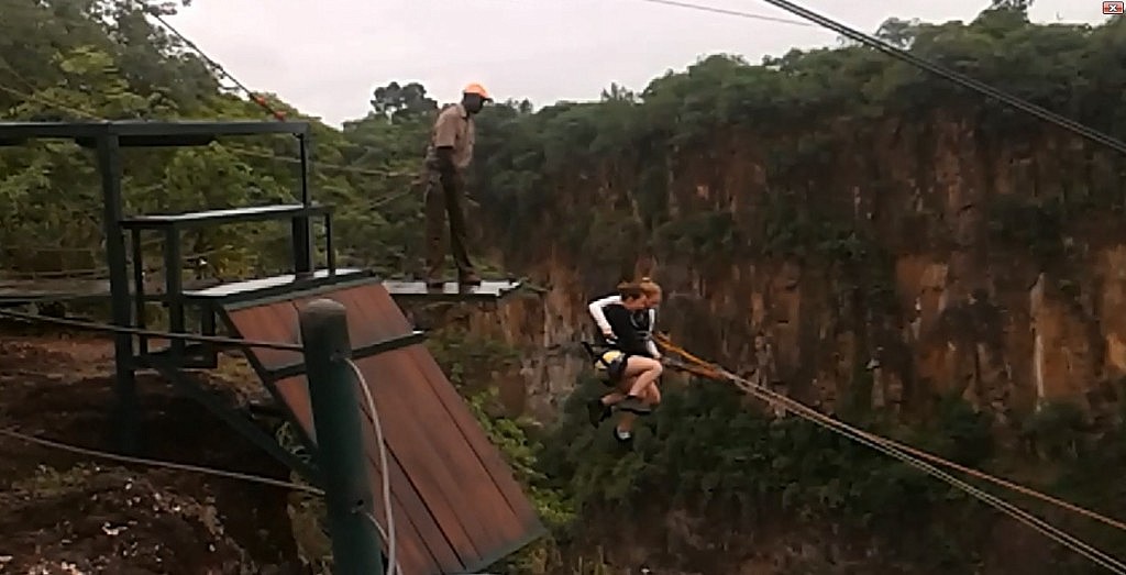 Am nächsten Morgen hatte dann Vanessas und mein letztes Stündchen geschlagen. Warum nochmal hatten wir den Tandem Swing mit 70 Meter freiem Fall gebucht? Das wussten wir auf einmal beide nicht mehr, aber der Salat war ja gebucht und so ging es dann los.