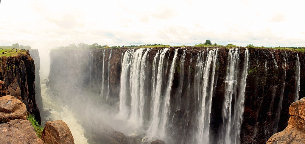 Der Adrenalinschock hielt den ganzen Tag an, auch als wir danach zu den Victoria Falls wanderten – aaah, oooh. Zu den Falls lässt sich nicht viel sagen. Man muss sie wohl selbst sehen. Sie sind gigantisch lang und schön. Sie enthalten so viel Wasser dass man sich fragt wo bitte immer der Nachschub herkommt.