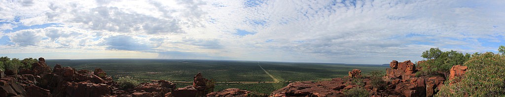 Doch natürlich ging das vorbei, insbesondere, als wir am nächsten Tag an den Waterberg aufbrachen und wieder on the road waren – ich finde nämlich Heimweh lässt sich sehr gut durch das Ausleben seines Gegenteils, einer gehörigen Portion Fernweh, die mich schließlich auch hier her geführt hat, beheben. Und sobald ich im Auto sitze kann ich mich nur noch auf das Neue freuen, das ich entdecken werde. Es war übrigens abartig heiß, 38 Grad oder so, und wir versuchten sehr selbst diszipliniert die Klimaanlage im Auto nur auf maximal 3 Grad kühler zu stellen, als es draußen war. Wir hörten Weihnachtslieder von John Lennon bis Melanie Thornton, trugen rote Zipfelmützen, aßen die verbliebenen Weihnachtskekse und fuhren der Sonne entgegen. Da war die Welt wieder schön. Nachmittags erreichten wir den Waterberg, sprangen in den Pool, bauten die Zelte auf und entdeckten den Aussichtspunkt direkt an unserem Camp. Einmal kurz durchs Unterholz gewatschelt, und schon bot sich ein richtig atemberaubender Blick ins Tal. Vorfreude kam auf: Wie würde es erst aussehen, wenn wir den Berg am nächsten Tag bis ganz nach oben hochsteigen würden?