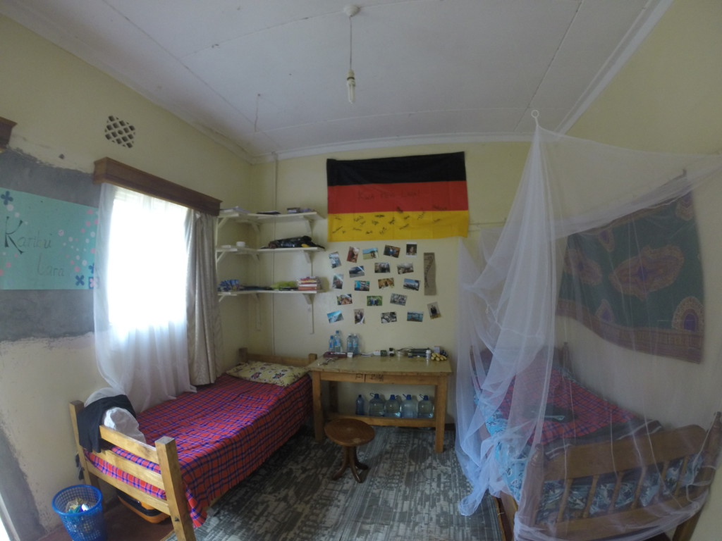 Am Mittwochmorgen ging es für mich sehr früh in Meru los, denn die Fahrt hatte es echt in sich. Einmal quer durch Kenia, viele neue Eindrücke, 527 Kilometer, drei Mal umsteigen und 14 Stunden unterwegs. Ziemlich kaputt von der anstrengenden Fahrt kam ich um 20 Uhr in Sega an und wurde sogar von einem kleinen „Komitee“ empfangen. Die beiden Father Dan und Shadrack, die andere Freiwillige Cathrin und natürlich Sina waren zur Bushaltestelle gekommen, um mich abzuholen. Das Wiedersehen war wunderschön und es ist irgendwie toll, so weit entfernt von Zuhause, ein vertrautes Gesicht zu sehen. Wir fuhren zum Parish, aßen gemeinsam zu Abend und tauschten uns über unsere bisherigen Erfahrungen in Kenia aus. Anschließend zeigten Sina und Cathrin mir das Freiwilligenhaus und das Gästezimmer, in dem ich schlafen sollte. Es war sehr gemütlich, allerdings gibt es hier in Sega sehr oft Probleme mit dem Wasser und auch der Strom ist lange nicht so zuverlässig, wie ich es aus Meru kenne. Aber das ist Gewöhnungssache! Müde von der Fahrt fiel ich schließlich ins Bett und schlief sofort ein.