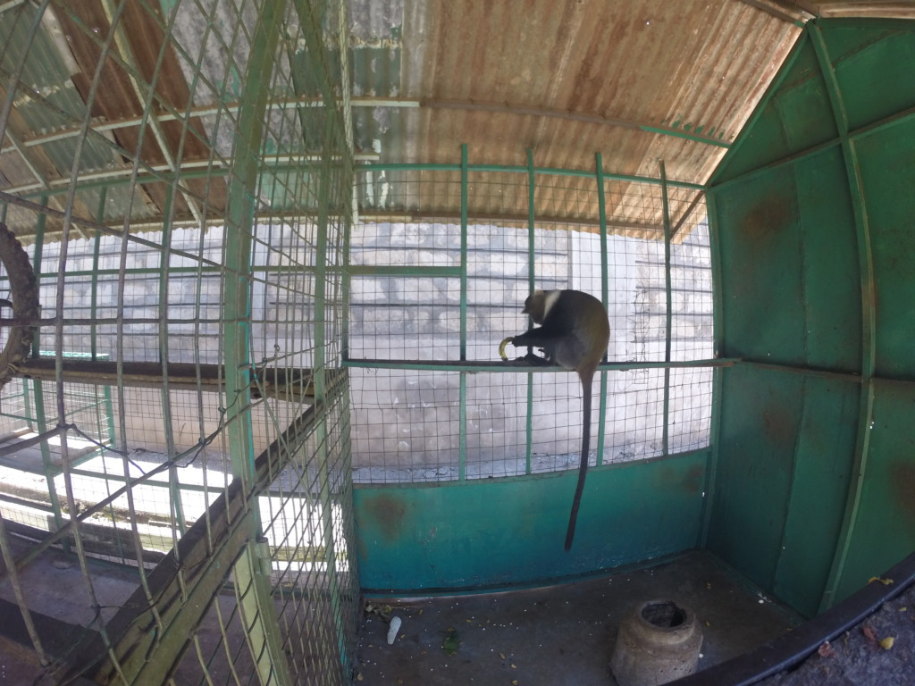 Ein weiterer, sehr rutschiger und lehmiger Weg führte uns im Anschluss zu einer Stelle, wo sich besonders viele Affen in den Bäumen tummelten. Benjamin erzählte uns, dass sie nach einer Weile auch näher kommen würden, um die Besucher zu begutachten. Das taten sie bei uns allerdings nicht. Daher verließen wir den Teil des Waldes und kamen in ein kleines Dorf, wo auch das Büro des „Kenyan Wildlife Service“ lag. Dort machten wir eine kleine Pause, bevor wir dann ein besonders altes Stück Regenwald, den „Mother Forrest“ besichtigten. Besonders interessant war dort ein Baum, dessen mit Wasser gefüllte Lӧcher einer bestimmten Fliegenart als Brutplatz dienten. Diese Fliege frisst Moskitos, sodass man im gesamten Kakamega Forest keine Angst vor Mückenstichen haben muss. Benjamin sagte uns, dass man auf diese Art vielleicht die Malaria in Kenia ausrotten kӧnnte. Außerdem gab es in diesem Teil des Waldes eine Menge hohler Bäume, die so breit waren, dass Sina und ich uns problemlos hineinstellen konnten.