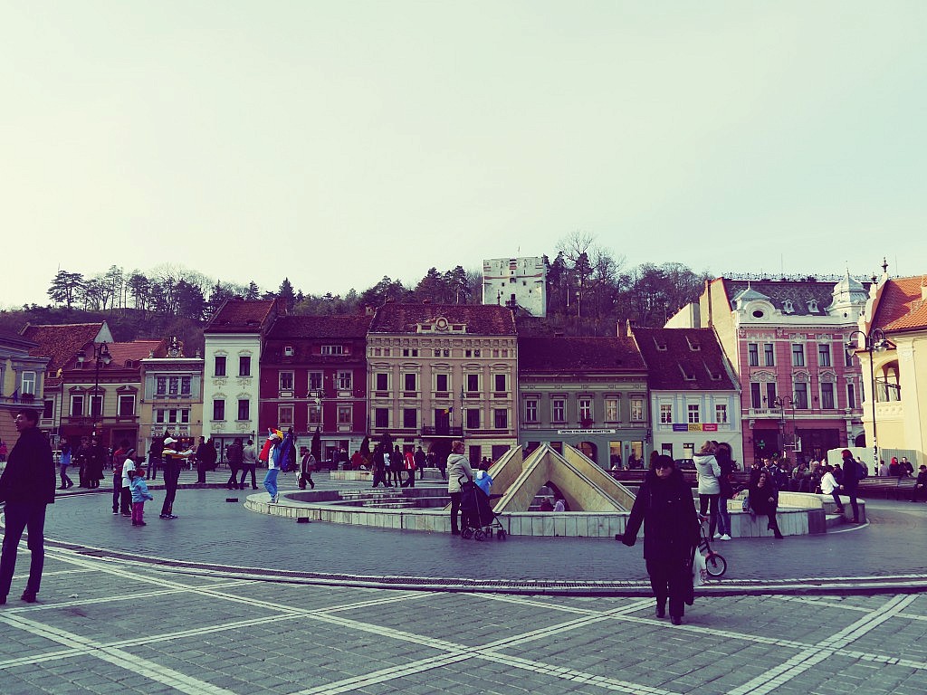 Freitagnachmittag ging’s los mit dem Zug. Nach 18 h Fahrt stiegen wir mehr oder weniger fit am nächsten Morgen in Braşov aus und machten uns auf Richtung Hostel, um zehn weitere »kulturweit«-Freiwillige dort zu treffen/zwei Tage zu verbringen. Doch dies erwies sich schon als erste Hürde. Am Schalterhäuschen versuchten wir Fahrkarten für den Bus ins Zentrum zu kaufen, scheiterten aber aufgrund unserer fehlenden rumänisch Kenntnisse daran. Glücklicherweise bemerkte ein älterer Herr, dass wir deutsch sprechen und konnte uns die Tickets besorgen. Nun direkt in den Bus einzusteigen wäre aber natürlich viel zu einfach – wir nahmen lieber unsere Beine in die Hand, da wegen einer Demonstration alle Straßen gesperrt waren und so weder Bus noch Taxi fuhren.