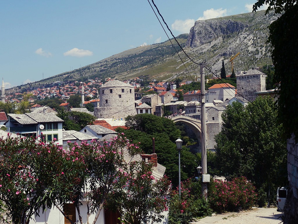 Die Spuren des Krieges konnten in Mostar jedoch nicht gänzlich versteckt werden. Sobald man aus der hübsch restaurierten Altstadt heraus kam, sah man runtergekommene Häuser mit Einschusslöchern in den Wänden. Während des Bosnienkrieges bekämpften sich Bosniaken und Kroaten, so dass es zu einer Teilung der Stadt kam. Dabei wurde auch die Stari Most nicht verschont, sondern gezielt zertrümmert. Im Jahre 2004 konnte sie endlich wieder offiziell eröffnet werden.