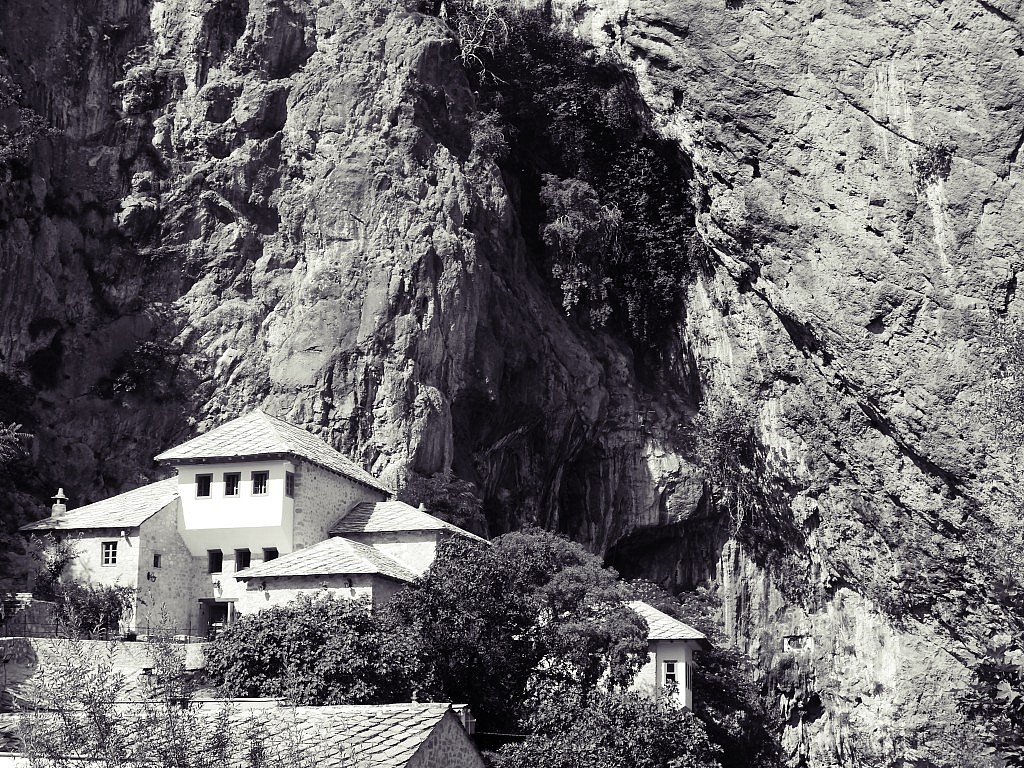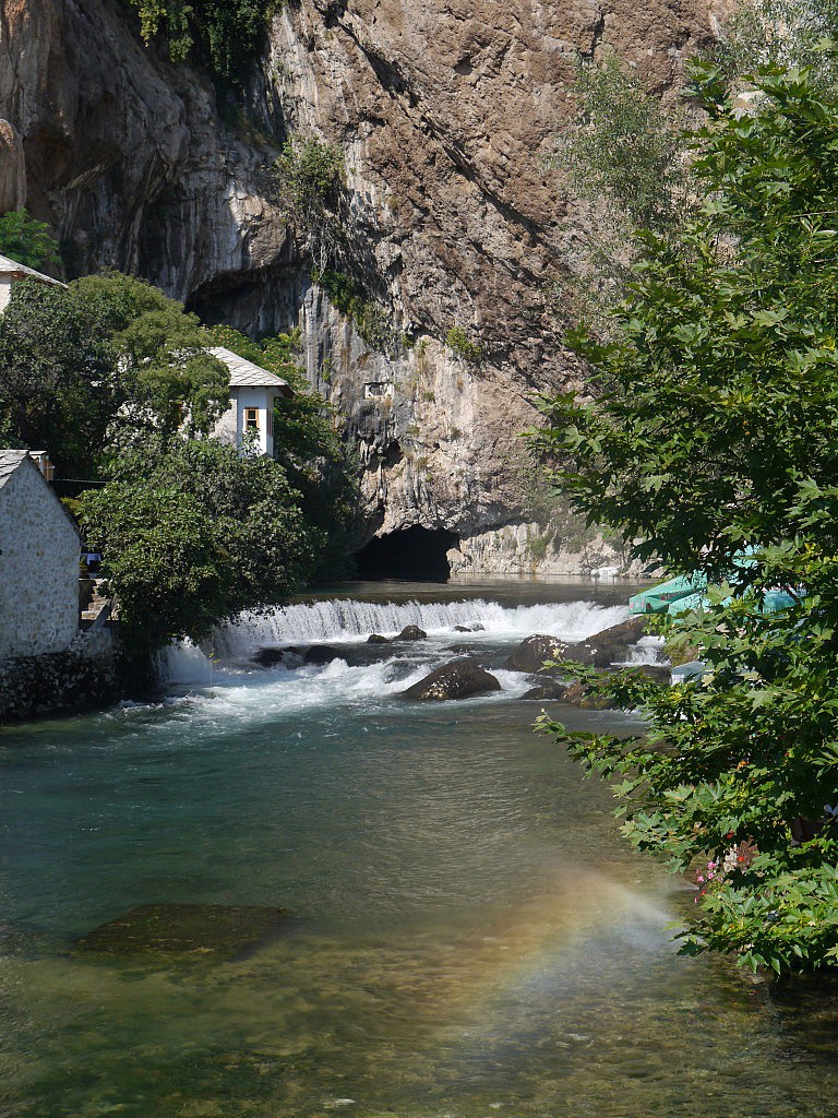 Bei unserer krassen Schwimm-Experience lernten Mascha und ich einen Deutschen kennen, der zufällig mit seinem Auto nach Mostar gekommen war. Also konnten wir zusammen mit ihm kurzer Hand doch zu unserem auserkorenen ca. 13 km entfernten Ausflugsziel Blagaj fahren. Dort entspringt die Buna, ein Nebenfluss der Neretva, aus der Vrelo Bune (Quelle), die hübsch anzusehen ist. Ebenfalls kann man das Blagaj Tekija besichtigen, ein Derwischkloster, welches um 1520 gebaut wurde.