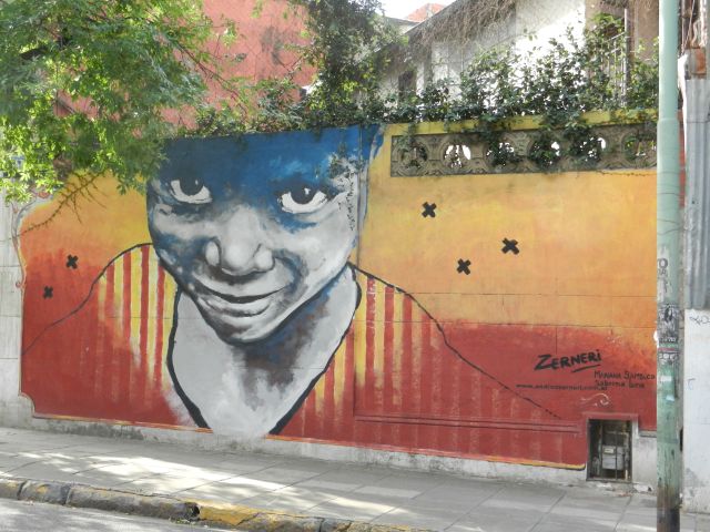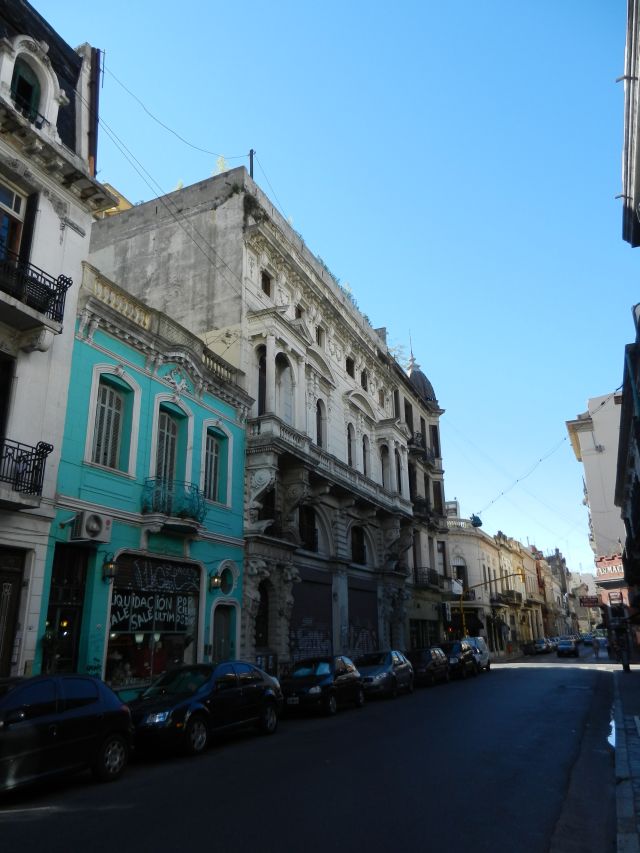 So wird an jeder Kreuzung, an der keine Ampel steht, kurz gehupt. Wer am schnellsten hupt der fährt. Klappt (fast) immer. Und wenn es mal nicht funktionieren sollte, dann gibt es ja immer noch Gaffa-Tape, das alles wieder schön zusammenhält. Autos werden hier solange gefahren bis der Fahrer nicht mehr sitzen oder nicht mehr lenken kann. Das Straßenbild ist hauptsächlich von Autos, Taxis und Bussen (Colectivos) geprägt. Dazwischen viele Moped- und Motorradfahrer, natürlich ohne jegliche Schutzkleidung. Auch der Helm findet bei vielen eine neue Verwendung als Armreifen oder wird so aufgesetzt, dass er als eine Art Stirnband anmutend nicht komplett über den Kopf gezogen wird. Fahrrad fahren nur die Lebensmüden, denn Rechte hat nur der, der hupen kann! Womit sich auch der Fußgänger in ständiger Lebensgefahr befindet. Ich erlebe das leider jeden Morgen auf dem Weg zu meiner Sprachschule. Diese liegt im Zentrum von BsAs. Auf dem Weg in die Fußgängerzone (auch hier fahren leider Autos) muss ich zwei große Hauptstraßen überqueren, eine davon besitzt keine Fußgängerampel. Das Überqueren sieht dann jeden Morgen ungefähr so aus: