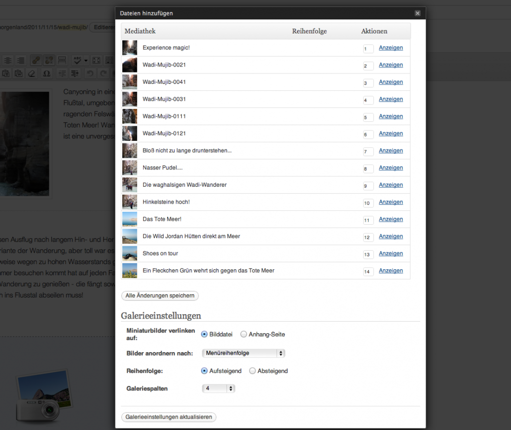 Über die Galerie-Einstellungen kannst du noch Verlinkung des Bildes, die Anordnung, Reihenfolge und Spaltenanzahl wählen.