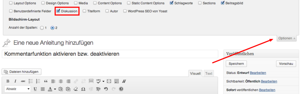 Kommentarfunktion aktivieren bzw. deaktivieren