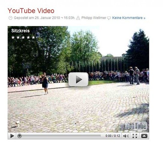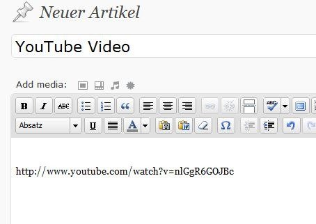 Du musst nur beim Schreiben die vollständige Adresse zum Video wie z.B. “http://www.youtube.com/watch?v=nlGgR6GOJBc” in eine eigene Zeile einfügen und darauf achten, dass die Adresse nicht als Link angezeigt wird.