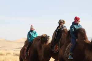 - Was hast du gesehen? Was hast du unternommen? Ich behaupte einfach mal: alles, was der Süden der Mongolei zu bieten hat. Wir haben jede Nacht bei einer anderen mongolischen Familie geschlafen und damit tiefe Einblicke in die Kultur auf dem Land erhalten. Von jedem wurden wir sehr freundlich aufgenommen und man war stets um unser Wohl besorgt. Die Tour hielt auch einige besondere Überraschungen für uns parat. So ritten wir an einem Nachmittag auf Kamelen an Sanddünen entlang und kraxelten diese hoch. Die Aussicht war fantastisch. Am Fuße der Dünen lagen die Kamele, dahinter erstreckte sich ein sattgrün bewachsener Streifen und wiederum dahinter eine goldbraune Ebene. Fast wie gemalt. Was bei so einer Reise auch nicht fehlen darf, ist die Besichtigung von Klöstern und Tempelanlagen.