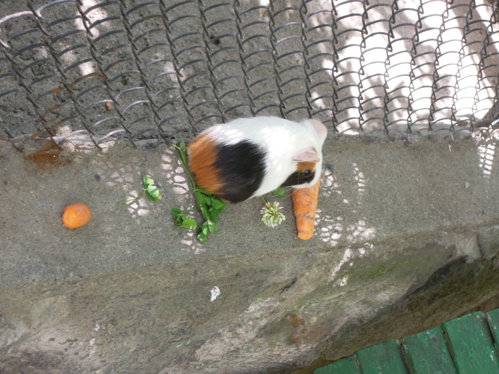 Außerdem waren in meinem Arbeitsbereich ca. 100 Meerschweinchen (Schlangenfutter), 20 Hasen (auch als Futter gedacht) und 2 Hunde. An einem Tag entdeckte ich ein kleines Meerschweinchen in der Vogelküche. Natürlich musste ich es gleich streicheln und verhätscheln und füttern und mit ihm spielen. Gemeinsam mit den anderen taufte ich es auf den Namen Mathilda und durfte es behalten. 🙂