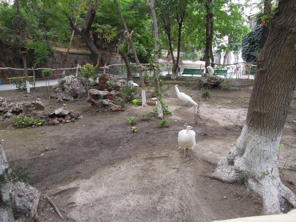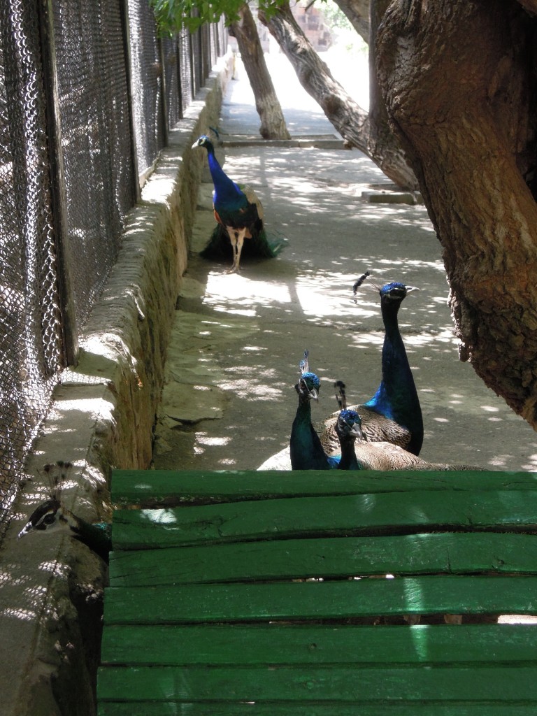 Als ich Herrn Manukyan fand, war ich beruhigt. Solchen Menschen konnte die Wiederherstellung des Zoos gelingen. Außerdem konnte er Englisch. Zweiter Pluspunkt. Er meinte, ich könne mir aussuchen, was ich machen wolle und auch wie lange. So entschied ich mich für die Vögel, von denen es eine ganze Menge gab. Außerdem wollte Herr Manukyan ausprobieren, ob wir nicht ein paar Pfauen im Zoo frei herumwandern lassen könnten. Ich sollte auf sie aufpassen und dabei ein wenig dokumentieren, wie sie auf die Besucher und die Besucher auf sie reagierten.