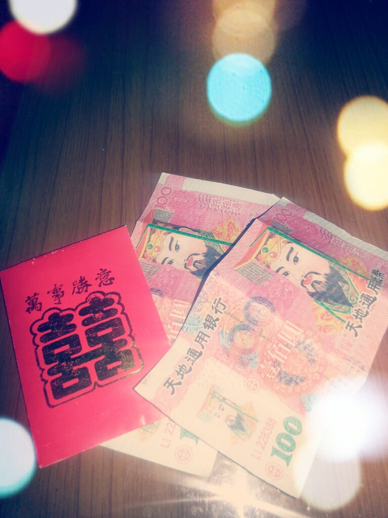 Wobei mir gerade auffält, dass ich gar nicht als armer Schlucker endete, denn Robin (kulturweitler in Wuxi) überreichte uns jeweils bei seinem letzten Besuch vor wenigen Tage ein hongbao – ich bin reich! Ultimative 200-Fake-Yuan Scheine bergte der Umschlag, die gewöhnlich zum Gedenken der Ahnen verbrannt werden.