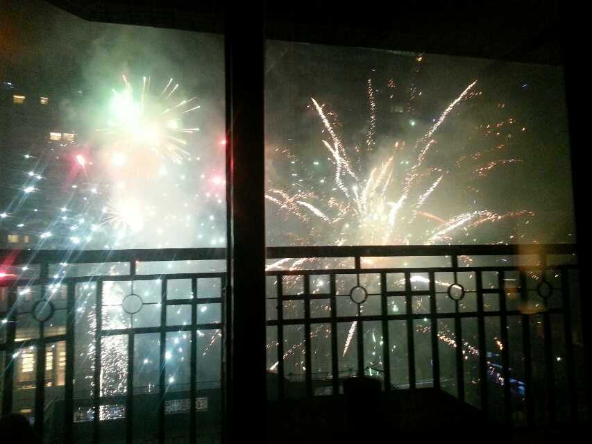 Es war ein komisch bekanntes Gefühl mit Christina in der Neujahrsnacht den eisglatten Weg zum Krachen der Feuerwerkskörper entlangzuschlittern. Zum „westlichen“ Neujahr am 1.1. war es unheimlich still in Shanghai. Zwar wurde partymäßig nicht gegeizt und ich hatte zur damaligen Zeit auch nicht das Gefühl, es hätte etwas gefehlt. Das lag wahrscheinlich daran, dass ich in einer internationalen Blase gefangen bin – traurigerweise eher weniger etwas mit Lokalisten zutun habe und daher auch alles aus einer verzerrten Sichtweise erlebe.In der Nacht vom 9. zum 10. Februar realisierte ich, das ich das befangend prickelnde Gefühl leuchtendes und glitzerndes Feuerwerks vermisste. Ich weiß nicht wie es euch geht, doch ich bin wie gefesselt von solch einem Lichtspiel und könnte diesem unendlich lange zusehen. So machten wir es uns vor Eimans Balkon im 17. Stock bequem und schauten dem Lichtkunstwerk verklärt und sehnsüchtig zu – quasi Silvester reloaded.