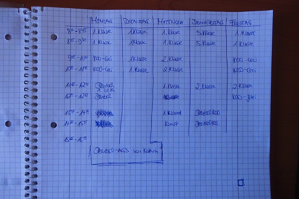 Überraschenderweise hatte ich heute ab 11.10 Uhr frei – genial :). Mein Spanischkurs entfiel leider, also werde ich am Samstag noch ein paar Stunden Spanischunterricht haben und die Deutsch AG am Nachmittag entfiel auch. Die Hausaufgaben bis spät in die Nacht zu erledigen, hätte ich mir zwar sparen können, aber dafür hatte ich heute Zeit zum Durchschnaufen. Vor allem nach dem gestrigen Unterrichtstag…