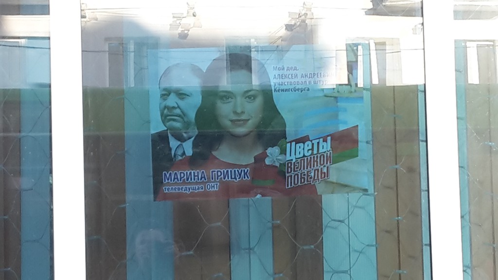 20160505_184208 7. Mai 2016 1024 × 576 победа, перамога, der Tag des Siegs „Die Blumen des großen Sieges“. Plakate, auf denen berühmte belarussische Persönlichkeiten mit ihren Vorfahren abgebildet sind.