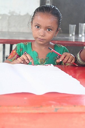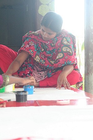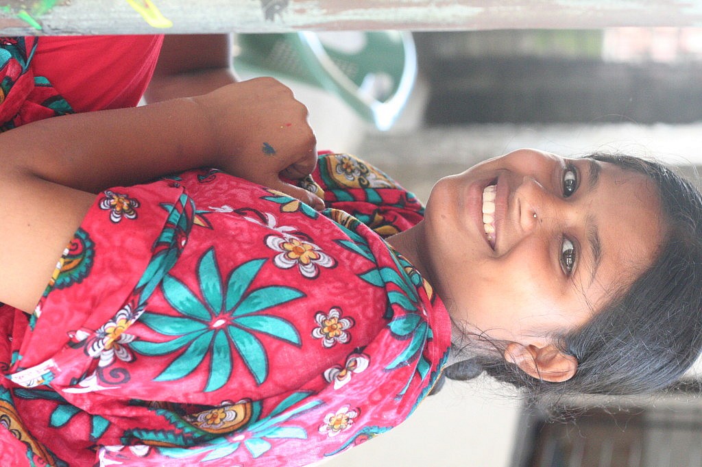 60 kids and me, we are painting our favorite food with finger colours onto big papers. The kids are students of the Shishu Neer School. The paintings are a small part of my little kulturweit project „Flour Power“ – I will tell you more later. I need to mention that our communication language was Bangla and we were able to understand each other. (Sometimes we needed to use hands and feet additionally…) I think I grew two inches, because I am quite proud of me.
