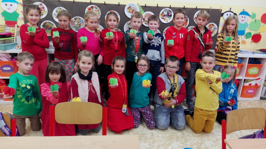 Im Oktober war „Apfel Tag“ an meiner Schule. Solche Aktionstage gibt es hier ca. alle 2 bis 3 Wochen. Sie finden Nachmittags, nach dem regulären Unterricht statt. Die Kinder hatten verschiedene Sachen zum Thema „Apfel“ gebastelt und auch gebacken, welche sie im Foyer an die Eltern verkauft haben. Ich habe den Apfel Tag in der Klasse 2c verbracht. Wir haben Äpfel mit Nelken gespickt und auch einen Apfel aus Papier gebastelt. Fast jede Mutter hatte einen Apfelkuchen gebacken und so standen dann 20 Kinder vor mir Schlange und wollten, dass ich mir ein Stück von ihrem Kuchen nehme. Da ich an dem Tag schon 2 Stück Apfelkuchen gegessen hatte, konnte ich leider nicht von jedem Kuchen probieren, auch wenn ich einige Kinder dadurch etwas enttäuschen musste.