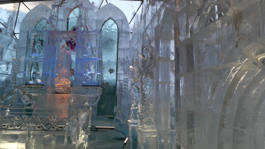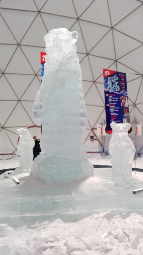 Schloss und Bären aus Eis (Bären deshalb, weil es in der Slowakei 800 wildlebende Bären gibt)