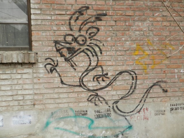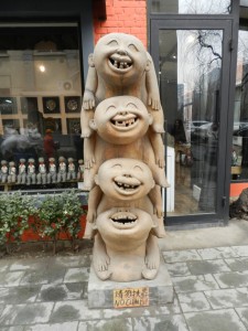 So. Genug jetzt von Blut und Schnee. Es geht runter von der Mauer. Der Weg führt durch einen schier endlosen Souveniermarktplatz. Glücklicherweise stellen sich mir nur die kühnsten Verkäufer in den Weg, denn ich bin ein böse guckender Europäer, der aussieht, als habe er gerade einen Todeskampf hinter sich. Bei unserem Fahrer angekommen, hat das Bluten endlich aufgehört und wir machen uns auf den Weg zum berühmt berüchtigten Künstlerviertel, das auf den Namen 798 hört. Während der Fahrt, hat die liebe Fritzi dann endlich ein Photo gemacht. Vom Todeskampf ist da zum Glück auch nichts zu erkennen.