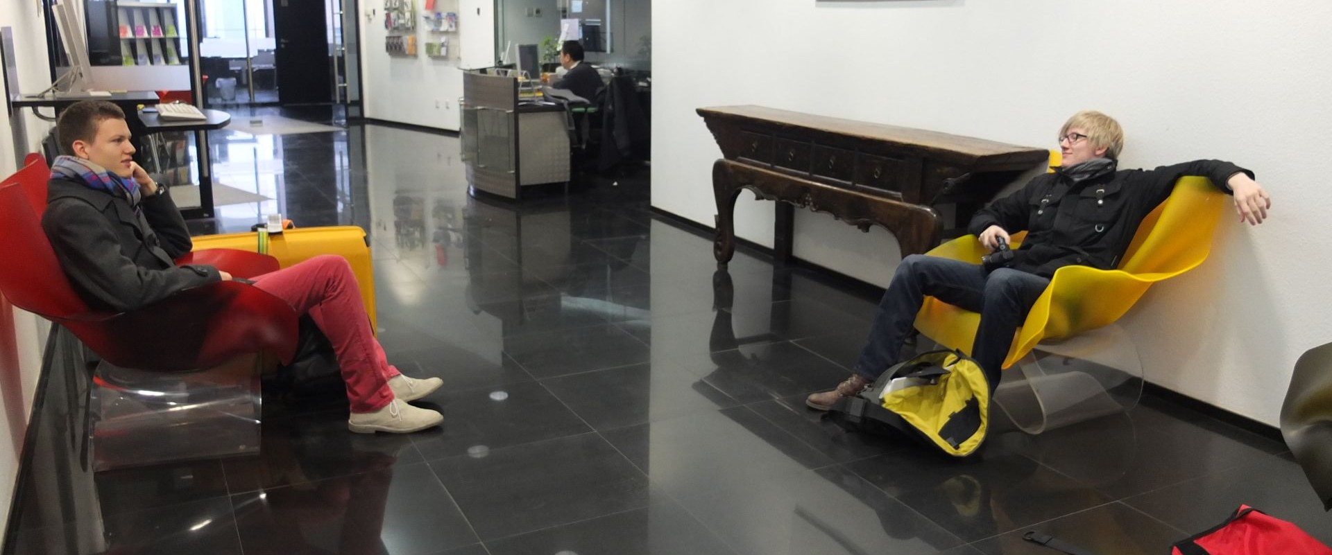 Wir warteten noch kurz im Flur, denn wir waren etwas zu früh. Dort standen verdammt coole Sessel. Zuerst erhielten wir von neun bis zwölf einen interessanten Crashkurs in Interkulturelle Kommunikation vom sehr netten Herrn Dr. Jandock, der extra für uns in seiner Freizeit gekommen war. Wir sprachen über viele Dinge. Zum Beispiel über die Auffassung oder Übersetzung verschiedener Worte, Kulturdefinitionen, Wertevorstellungen. So gestalteten sich spannende drei Stunden. Dann hatten wir bis zwei Uhr Mittagspause und machten uns auf die Suche nach einem Restaurant.
