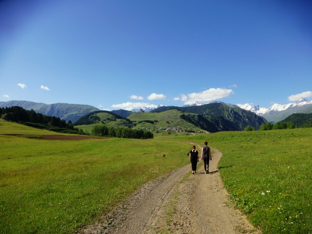 Im Oktober, Ende der Saison, sind in Mestia kaum noch Touristen und die Berge in wunderbare Herbstfarben getaucht. Es bieten sich zahlreiche Wanderungen in die Umgebung an, zum Beispiel zum Gletscher oder zum Gipfelkreuz. Auf keinen Fall dürft ihr Ushguli, das höchste Dorf Europas verpassen.
