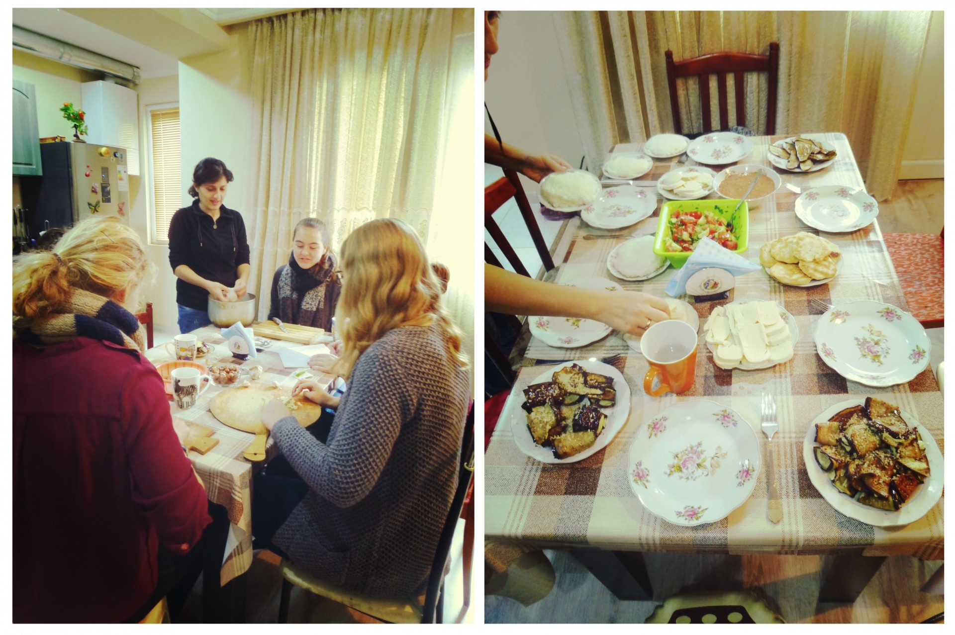 Wenigstens hatte ich so genug Zeit mich der Vorfreude zu widmen. Denn abends habe ich mit meinen Mitbewohnern mein Lieblingscafé besucht. Wir sind jetzt eine richtige WG-Family, die zusammen am Wohnzimmertisch sitzt, Wein trinkt, Klopapier und Waschpulver teilt (!), Pfannekuchen kocht und feiern geht. Elsa aus dem Iran, meine Lieblingsmitbewohnerin und Verbündete in Operation Kater, wohnt zum Glück immer noch hier. Hinzu gekommen sind Malies, eine belgische Jurastudentin, die in Tbilissi ein Praktikum über die UN macht und Lomi, ein facebookverweigernder Dreadlock-Hippie aus Deutschland, der schon länger in Georgien wohnt.