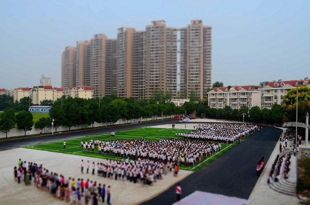 Jetzt ist es schon 07:00 Uhr und ich muss mich so langsam beeilen. Normalerweise beginnt mein Unterricht gegen 08:15 Uhr oder 9:00 Uhr, aber heute ist Fahnenappell. Ungefähr 6000 Schüler versammeln sich in weißer Schuluniform und rotem Halstuch pünktlich um 07:40 Uhr auf dem Sportplatz, direkt vor dem Podium und dem Fahnenmast. Die Lehrer sind von diesem militärisch anmutenden Ereignis übrigens nicht ausgeschlossen. Sie stehen genauso in Reihe und Glied wie es die versammelte Schülerschaft tun muss. Viele Reden werden gehalten, währenddessen im Hintergrund Lang Lang, so hört es sich zumindest an, Klavieretüden in Dauerschleife vorspielt. Ein Redner wechselt den Anderen ab, so geht es gefühlte drei Stunden mit dem immer wiederkehrenden Thema. Doch plötzlich stehen alle Schüler kerzengerade und halten ihre rechte Hand ausgestreckt vor das Gesicht. Das ist das Signal. Jetzt kann die Flagge langsam und in vorsichtigen Zügen gehisst werden.