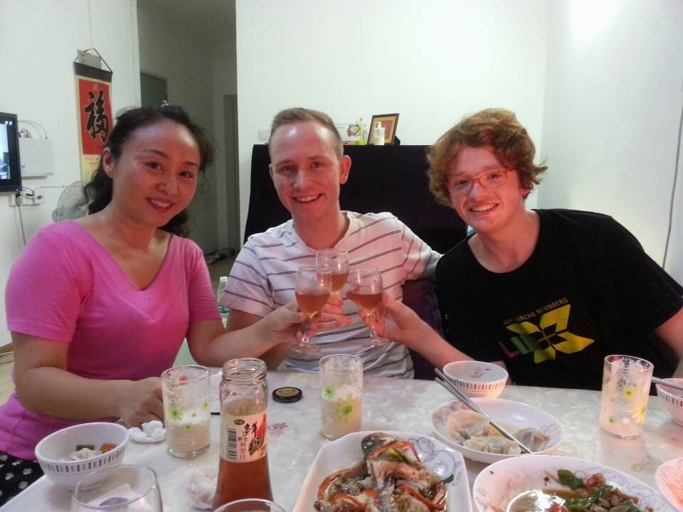 Ja, so einfach ist das manchmal, aber meistens, ihr kennt das wahrscheinlich auch,  hat man viel zu sehr Angst oder Scheu davor, den Anderen zurückzuweisen, weil man eben nicht unhöflich wirken will und genau weiß, wie viel Mühe sich der Gegenüber damit gemacht hat. Solltet ihr also mal hier in China zu einem selbstgemachten Essen eingeladen werden, so scheut euch nicht davor nein zu sagen, denn auch hier werden sie es verstehen. Nachdem der letzte Tropfen Wein getrunken, das letzte Rind gegessen und die letzte Gräte des Fisches gezupft worden war, neigte sich der Abend dem Ende zu. Natürlich haben wir auch Bilder gemacht, dieses hier zum Beispiel.