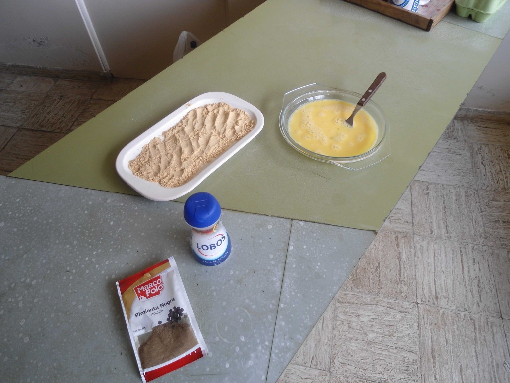 Die Schnitzel werden gewaschen und gut trocken getupft. Mit Salz und Pfeffer je nach Geschmack würzen. Danach in geschlagenem Eigelb und später in Paniermehl wenden.