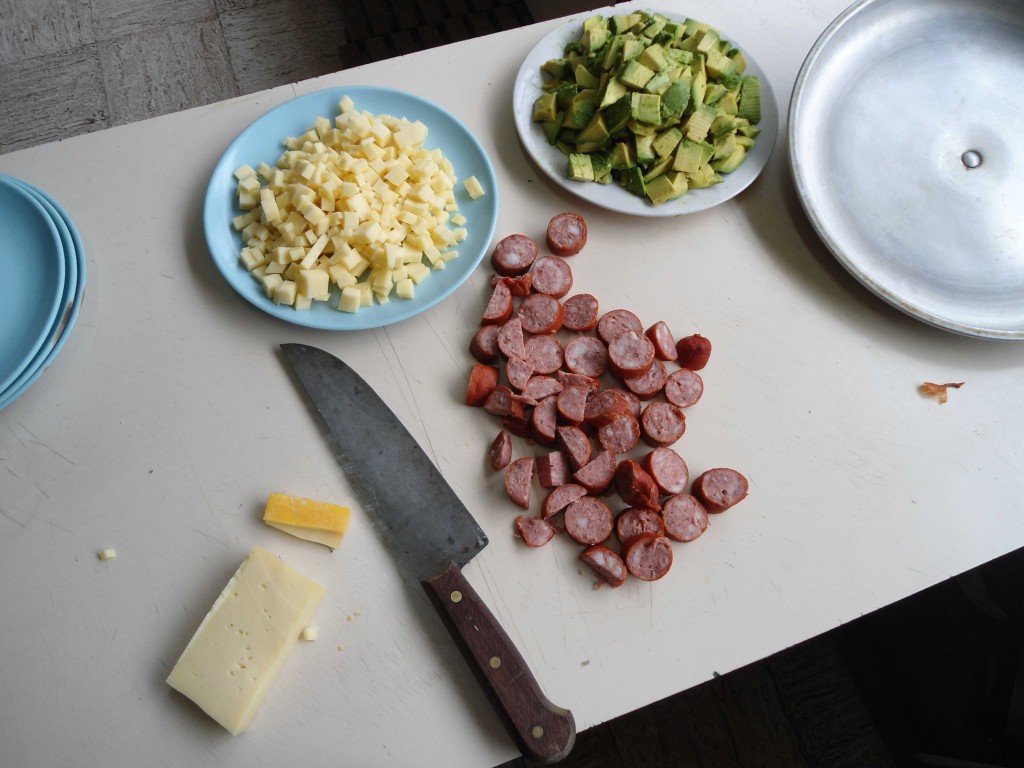 Käse und Avocado dann auch in kleine Würfelchen schneiden.