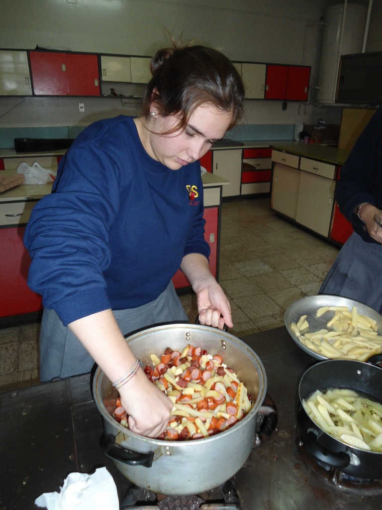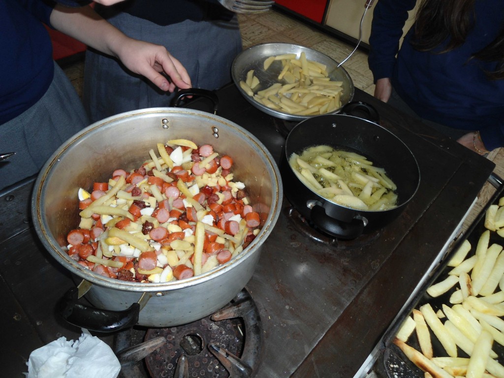 Wir hatten, aufgrund des Ofen, der nicht gleichmäßig warm wird, einige Probleme mit den Pommes. Haben sie dann zur Hälfte in einem Topf mit Öl frittiert und die andere Hälfte im Ofen gebacken. Das hat relativ lange gedauert.