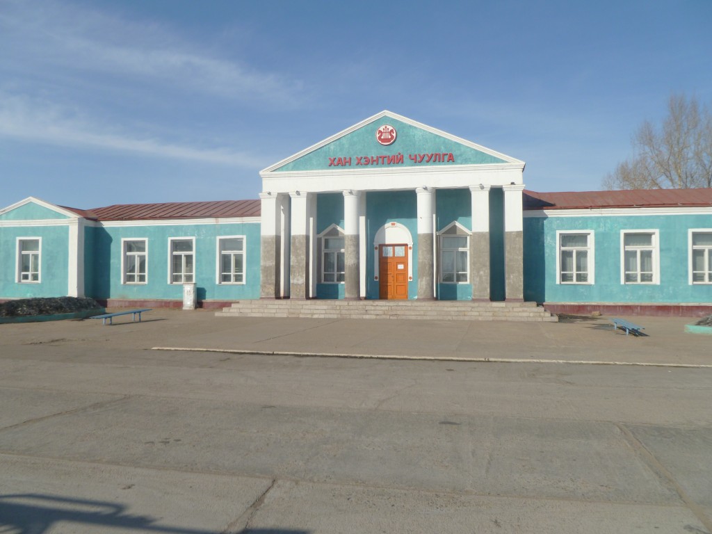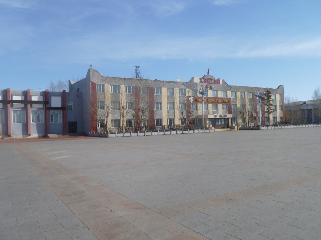 Auf einmal meinte meine Gastmutter: „Komm wir schauen uns die Umgebung an.“ Also auf. Die nähere Umgebung zu erkunden. Gegenüber vom Haus meiner Gast-Großeltern ist das Theater. Vor dessen Eingangstüren befindet sich das Regierungs-Gebäude des Khentii Aimags.