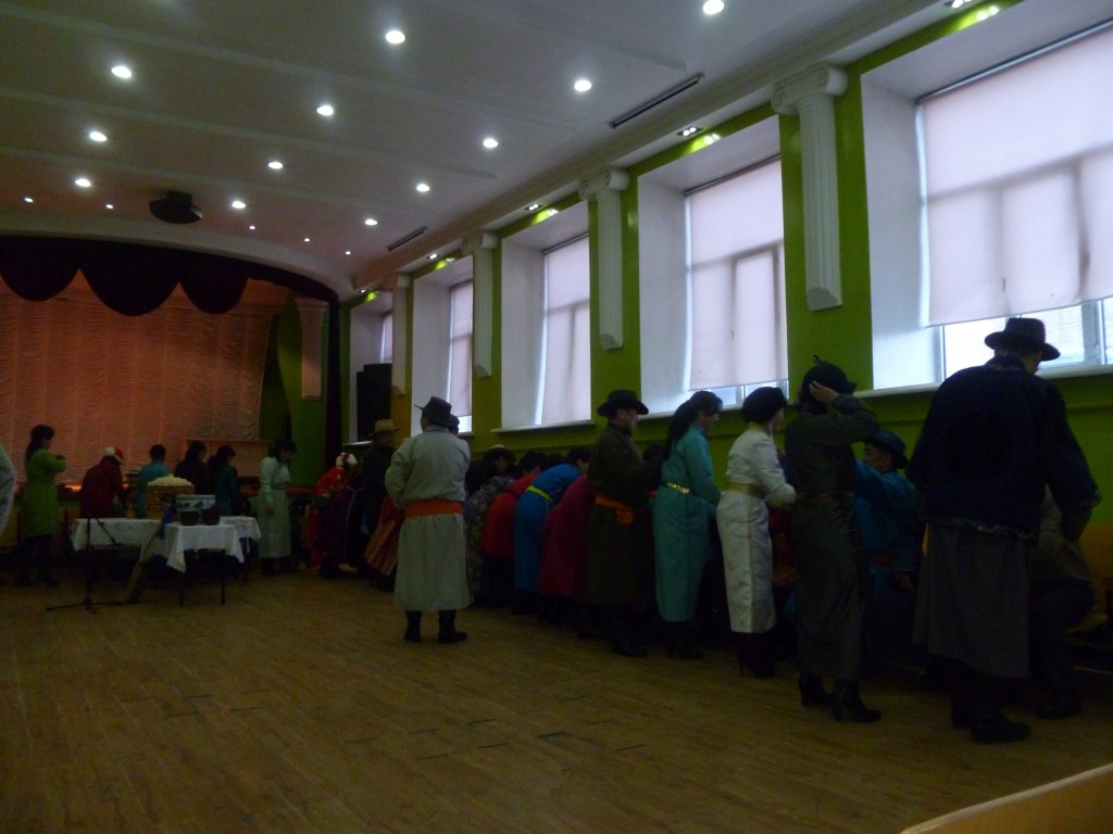 Dies ist der Tag, an dem man seinen Kollegen ein gutes neues Jahr wünscht. 8.00 Uhr sollte es losgehen. 9.00 Uhr fing es dann wirklich an. Und siehe da: Es ging so wie die Tage zuvor auch. Man begrüßte sich. Und habe ich einen mal vergessen, so kam derjenige zu mir und wollte mich auch noch begrüßen. Das Kollegium hier an der Schule kennt mich mittlerweile. Es gab keine Buuz. Keinen Wodka. Wir mussten ja noch arbeiten. Aber es gab Airag. Und Fleisch.