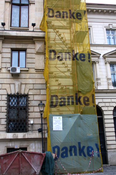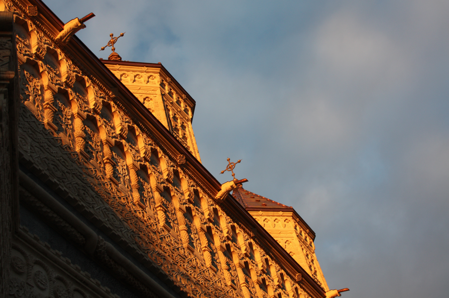 Ich könnte jetzt behaupten, dass ich absichtlich den Februar von Einträgen her übersprungen habe, um mehr Spannung aufzubauen und nun mit großem Traraaa einen frohen ersten März zu wünschen (wenn auch selbst das verspätet), denn hier bedeutet dieser Tag Frühlingsanfang und damit viele „O primăvară frumuosă“s und schöne kleine Armbänder und Anstecker (Mărțișoare, auf deutsch Märzchen) in rot-weiß, als Symbol für Schnee und Sonne, da unter dem Schnee die keimenden Körner der Feldfrüchte liegen, die von der Sonne dann ans Licht geholt werden, das ergab jedenfalls mein kleines Nachlesen. Ich habe auch schon gehört, dass das rot für die Erde steht und das weiß für die Wolken und den Himmel oder, dass das rot die Männlichkeit und das weiß die Weiblichkeit symbolisiert und irgendwo war auch von Liebe die Rede, selbstverständlich. Aber insgesamt ist es einfach eine schöne Tradition, die dazu führt, dass meine Arme und Kleider nun von einem Haufen rot-weißer Bänder geschmückt sind und ich schon gespannt bin, ob bald einige Blumen und Bäume diesen Schmuck übernehmen, denn wie ich gehört habe, darf man bei Sicht einer blühenden Pflanze ein Band darum binden und sich etwas wünschen. Der tatsächliche Grund für das Ausbleiben von Februarworten ist trotz der Schönheit dieser Tradition allerdings ein anderer. Es ist einfach sehr viel im letzten Monat passiert und in gewisser Weise kann man einige dieser Ereignisse wohl als kleine verschiedenartige Weltenwechsel bezeichnen, so wie ich es beschlossen habe zu tun. Zum einen gab es zu Beginn des Monats wieder mal einen Ausflug nach Bukarest, zu einem Treffen in der Deutschen Botschaft, was definitiv eine andere Welt ist als meine normale Umgebung. Dann war ich in den Ferien mit Freunden in der Ukraine, eine wunderbare Reise in ein so schönes Land mit Essen, das ich schon jetzt vermisse. Ich fand es recht interessant was für Reaktionen man auf derartige Reisepläne bekommt: von Hinweisen oder Fragen zu den Gefahren oder der politischen Lage zu von Vorurteilen geprägten Ratschlägen zu Korruption oder Wodka, je nachdem. Natürlich war auch das irgendwo ein Weltenwechsel, wie vielleicht jede Reise ein solcher ist, da man doch immer Neues entdeckt und vielleicht ja auch gerade dafür fort geht. Nach einer Woche in der Ukraine, wo mir besonders die Universität, die schönen Häuser und die rosa strahlende Kirche der Stadt Czernowitz, die Rebellenflaggen, die öfters mal auftauchten, die Kälte in den Bergen, das Rätseln über die hübschen kyrillischen Buchstaben, die für mich gelegentlich Hieroglyphen gleichen, all die schönen Momente und wie gesagt das herrliche Essen in Erinnerung geblieben sind, ging es dann auf einen weiteren Ausflug, vielmehr einen Aus-Flug. Ich war für ein paar Tage zu Besuch zu Hause. Es ist ungewohnt wie gewöhnlich es plötzlich wieder ist zurück zu sein, die Straßen dort entlang zu gehen, Freunde und Familie zu umarmen, sich für Karneval zu verkleiden und all die entsprechende, absurde Musik wieder zu hören, in meinem Zimmer zu leben und zum Kühlschrank zu gehen, vor allem um einfach hineinzusehen, schnelle Züge zu nehmen und Auto zu fahren, so wie letztes Jahr eben. Und trotzdem war es anders, ich habe gemerkt, dass mir mein rumänisches Zuhause mit all den Menschen und Orten gefehlt hat und auch diese Sprache um mich zu haben, von der ich eben nicht immer alles verstehe und mit der ich auch nicht den Großteil meiner Gedanken in Worte fassen kann, die ich aber trotzdem oder vielleicht auch ein wenig deswegen so lieb gewonnen habe. Es gab also in letzter Zeit zwei schöne Rückkehrten nach Hause. Die letzte Veränderung, der letzte kleine Weltenwechsel ist dann mein Umzug in Iași. Ich wohne nun viereinhalb Minuten entfernt von meiner Schule, in einer herrlichen, bunten, multikulturellen WG und bin glücklich über das viele gemeinsame Kochen, mein schönes Zimmer, all die Sprachen, die umherschwirren, mein wunderbarer Zitronenkuchen in der ersten Woche mit eigenem Ofen und die Tatsache, dass wir eine Zwiebelschublade haben, eine Schublade nur für Zwiebeln, das bringt mich immer wieder zum Lachen. Mittlerweile verstehe ich mich auch mit dem kleinen Wachhund, in unserem Vorhof, dessen Stimmung schon mal von regnerisch-traurig, zu hungrig auf mein Bein oder süß auf den Hinterpfoten sitzend schwankt, man muss aber auch zugeben, dass wir ihn ganz korrupt mit Knochen oder Leckerchen bestechen, damit er nicht immer beim Hinein- oder Hinausgehen bellt oder gar versucht jemanden wieder anzuknabbern (die Theorie, dass er vor allem Franzosen nicht mag, hat sich widerlegt, als er mich aus irgendwelchen Gründen auch als des Eintretens unwürdig empfand), aber so langsam kennt er uns alle ganz gut, auf den Besuch muss man dann eben immer etwas aufpassen. Und das waren dann alle Weltenwechsel des Februars, all die Veränderungen, die mir mehr im Kopf herumgingen als das Schreiben, was ich nicht so gut finde, also versuch ich mal ein wenig wieder bei dieser Welt zu bleiben.