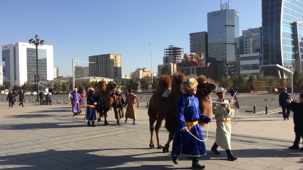 Die Kamel-Truppe von der Expedition Steppes to the West machte sich auf den Weg, ließ aber Murrat, ein (ehemaliges) Teammitglied zurück. Der Experte für arktische Expeditionen verbringt noch einige Wochen in der Mongolei und macht sich auf den Rückweg in die Türkei und nach Schweden. Murrat halte ich für den sympathischsten und den bodenständigsten der verrückten Truppe. Zum Aufbruch der Reise gab es am 29. Oktober eine Parade der Kamele mit Infos zu der Expedition und Tanz und Gesang von der Familie der mongolischen Ideengeberin Baigal, auf dem Sukhbaatar Platz.