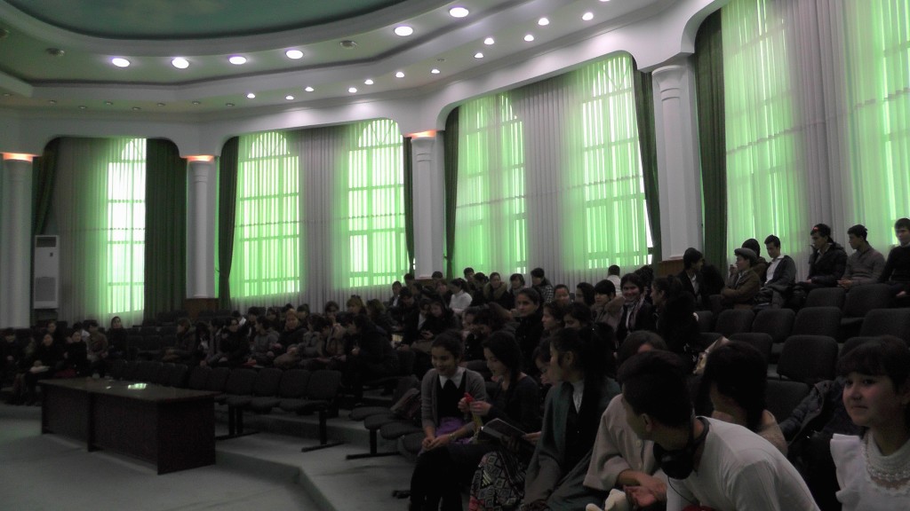 Vor der Aufführung – die zahlreichen Deutschlernenden aus der 19. Schule fehlen noch im großen Publikum.