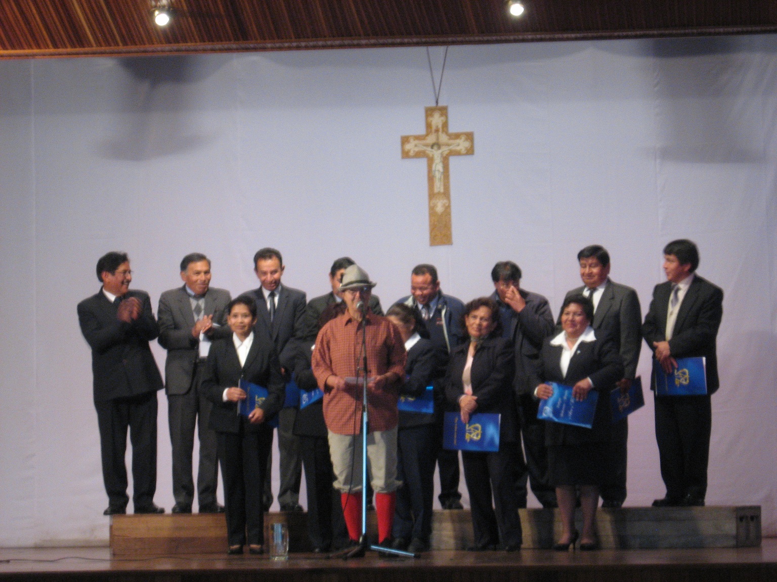 Sr. Christine und Lehrer beim Witzeerzählen – vor dem día del estudiante (Tag des Schülers), als Veranstaltung aller Lehrer für die Abschlussklassen 2011 Veröffentlicht 09/26/2011 am 1536 × 1152 in Primeras Impresiones: La Paz y Achocalla