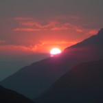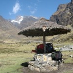 Nun waren wir am Ende eines Tals angekommen und stiegen nun über eine Stunde (schon völlig fertig) noch einmal auf einen Bergam rande des nächsten Tals, auf dem sich unser Schlafplatz befinden sollte. Dieser Campingplatz hieß „Bella Vista“ (irgendwie intalienisch) und hatte auch wirklich eine atemberaubende Aussicht. Glücklich, noch vor Sonnenuntergang angekommen zu sein, wurden wir noch zusätzlich motiviert, als Luis uns sagte, dass wir von allen seinen Tourleuten, die er bis jetzt geführt hatte, den Weg am schnellsten geschafft hatten.
