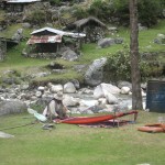 Und wenn man Glück hatte, ergab sich auch ein Ausblick auf die gegenüberliegende Seit des Tales und den beruhigend rauschenden Fluss im Tal. Nach weiteren vier Stunden Wanderung kamen wir dann an einem weiteren Campingplatz an – einen Campnigplatz darf man sich so vorstellen, dass es zwei Hütten, ein paar Hühner, ein bis zwei Frauen und ein paar Kinder sowie eine gerade Wiese gibt, jedoch ist alles sehr familiär und ganz und gar abgeschieden (ohne sauberes Wasser, Strom o. ä.) – einfach einen Tagesmarsch vom nächsten Örtchen entfernt.