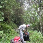 Um den tag kurz zu fassen: Es gab noch sehr viel bergaufgehen durch Urwalddickicht am Hang und wieder eine Mittagspause im Fluss. Diesmal regnete es leider, aber das war sogar ganz angenehm, weil zum einen der Regen ein tropischer war (d.h. ganz große Tropfen und ganz stetig) und wir zum anderen ja sowieso gerade nass waren.