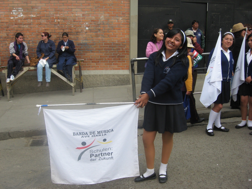 Die Schulkapelle mit PASCH-Logo begrüsst dei TIPNIS-Demonstranten Veröffentlicht 11/21/2011 am 1024 × 768 in Fotitos nuevos
