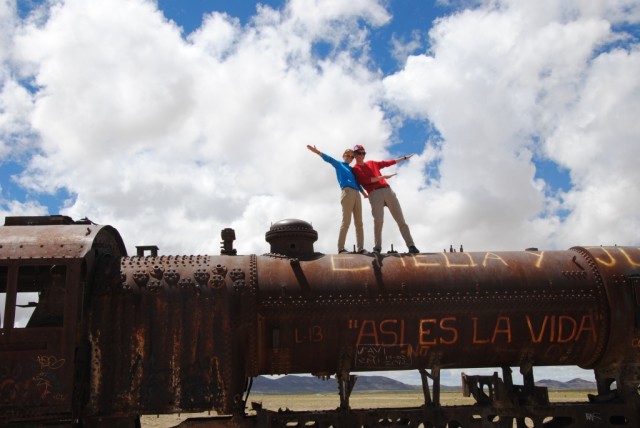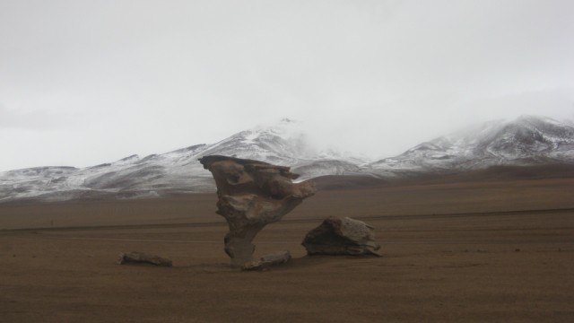 Darüber hinaus war in der letzten Woche ein Kumpel aus Berlin, Alex, hier und wir fuhren letzten Freitag zusammen nach Uyuni. Dort hatte ich mich mit Katharina, einer anderen kulturweit-Freiwilligen aus Argentinien verabredet. Natürlich, was macht man auch sonst anderes in diesem sibirisch angehauchten Städtchen, ging es dann auch direkt auf Tour in die Umgebung. Genau wie im Dezember mit Swantje, sahen wir auch diesmal die beeindruckenden Lagungen, den Salzsee (der diesmal wegen der Regenzeit überschwemmt war) und Wüsten auf 5000m üNN, die jetzt aber mit Schnee bedeckt waren.