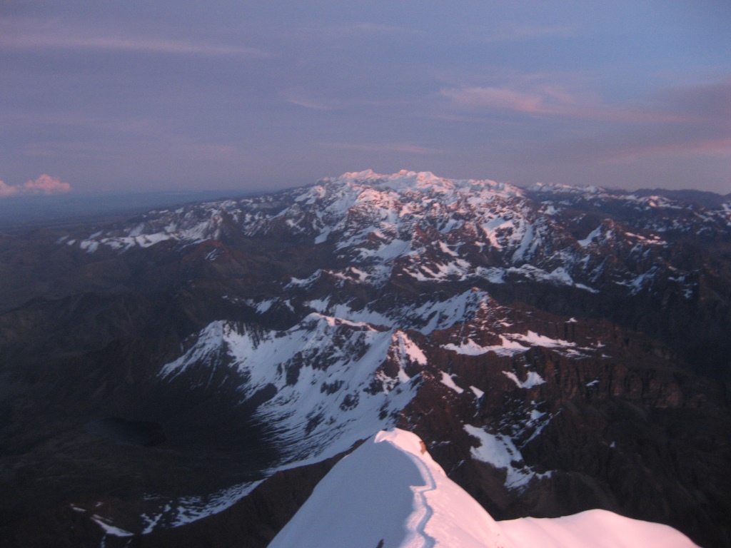 Der Blick vom Gipfel auf den Grat und das benachbarte Bergmassiv (mit dem Illampu) Veröffentlicht 05/01/2012 am 1024 × 768 in Huayna Potosí – den 6000er bezwungen!