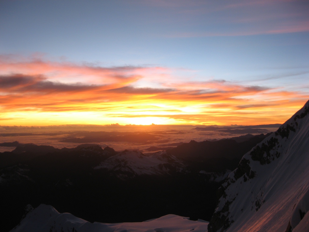 Der Sonnenaufgang beim Abstieg Veröffentlicht 05/01/2012 am 1024 × 768 in Huayna Potosí – den 6000er bezwungen!