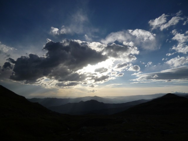 Nach zwei oder drei Stunden 700 Meter höher auf 4400 Metern im Basislager angekommen, waren wir schon gut geschafft, genossen nach dem Lageraufbauen den Anblick des Sonnenuntergangs und banden unsere sieben Sachen mit Stricken gegen zusammen – wegen Dieben, so wurden wir gewarnt.