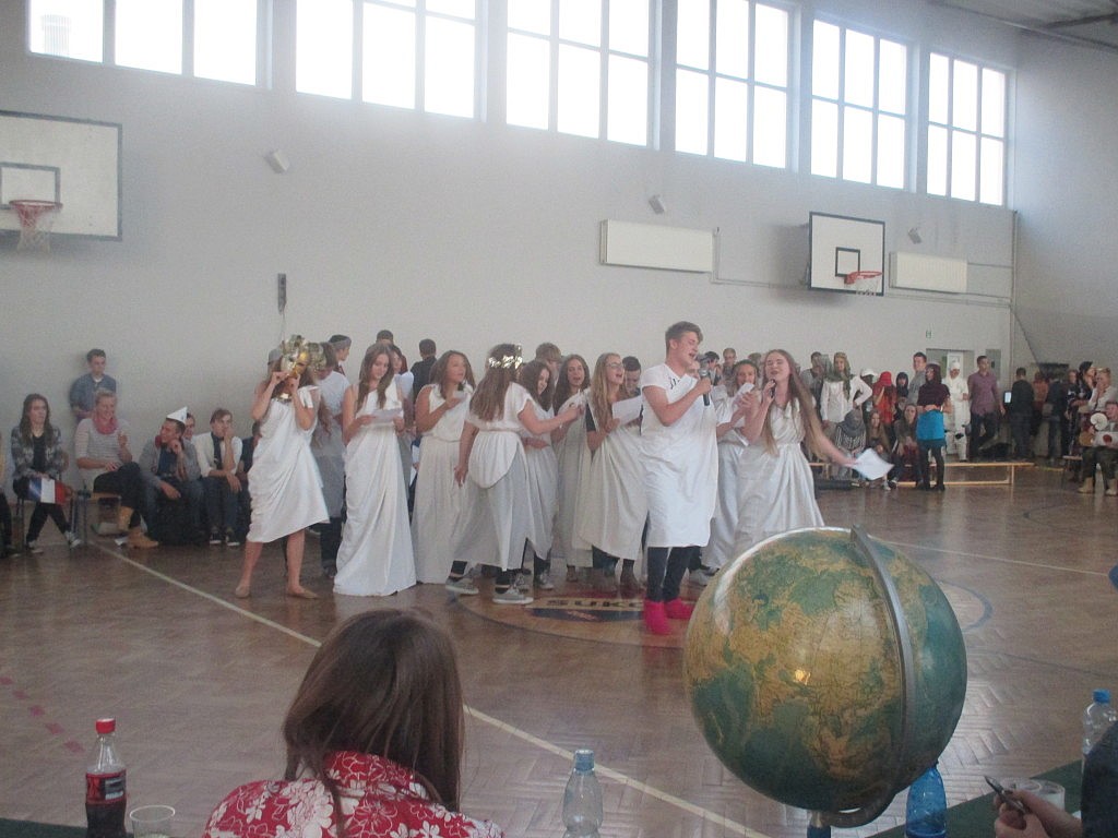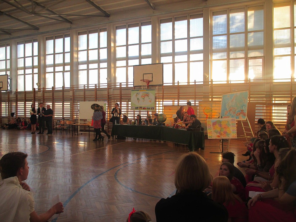 In Polen werden Schulereignisse immer sehr festlich gefeiert, zumindest ist das mein bisheriger Eindruck. Vor zwei Wochen war die Sporthalle in eine bunte Kulisse verschiedenster Kontinente verwandelt worden und nicht mehr wiederzuerkennen! Die „neuen“ Schüler des Lyzeums wurden von den älteren Schülern feierlich willkommen geheißen und durch diverse Spiele, Sing- und Tanzauftritte in die Schulgemeinschaft aufgenommen. Eine Art „erster Schultag“ für die Oberstufenschüler also, eine sehr schöne Tradition wie ich finde! Wirklich schade, dass es das in Deutschland nicht in diesem Stil gibt!