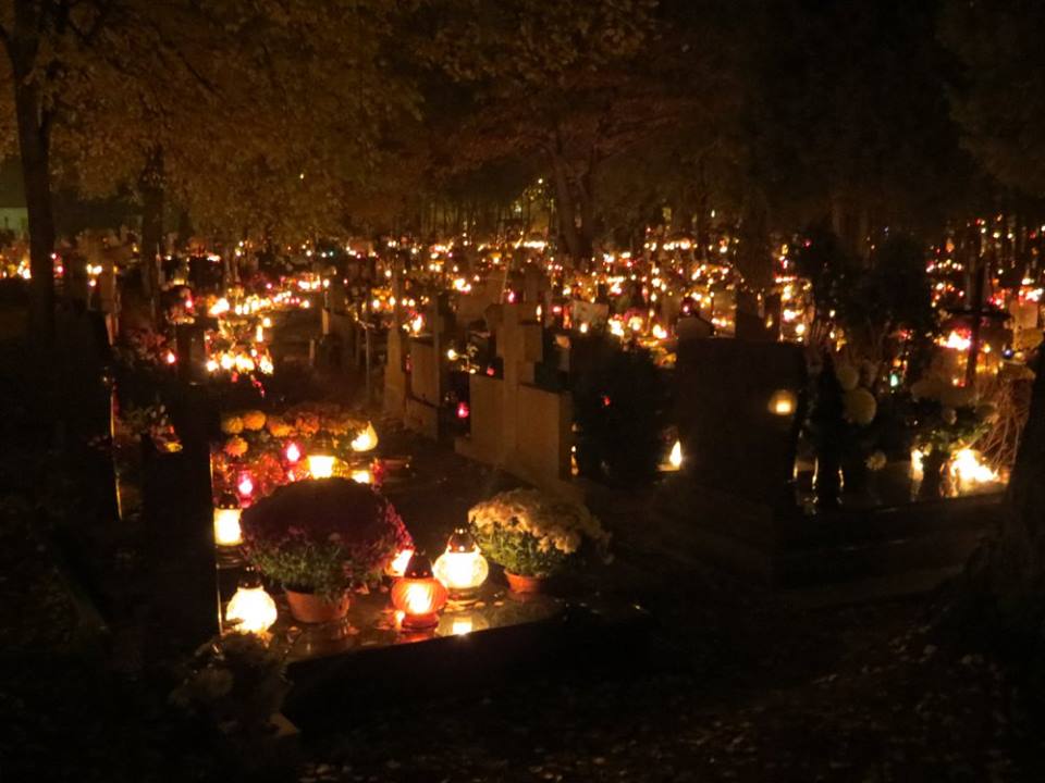Da bin ich wieder! Seit meinem letzten Beitrag ist schon wieder einige Zeit vergangen und ich kam einfach nicht zum Schreiben! Das liegt zum einen daran, dass man oft in seinem Alltagstrott gefangen ist und nicht so Vieles für erzählenswert hält, zum anderen liegt es daran, dass der November bisher ein sehr turbulenter Monat für mich war. Ich war in den letzten Wochen sehr viel unterwegs und muss nun versuchen, all meine Gedanken und Erlebnisse hier so komprimiert, verständlich und gleichzeitig so echt wie möglich niederzuschreiben. Das ist wirklich keine so einfache Aufgabe, aber ich gebe mein Bestes! Angefangen hat alles am ersten November, an Allerheiligen also. Dieser Tag ist auch in Deutschland bestens bekannt, hier in Polen allerdings wird er auf sehr eindringliche Art und Weise gefeiert. Die Stadt wirkt wie verlassen, denn alle Menschen befinden sich auf dem Friedhof, um gemeinsam mit der Familie den verstorbenen Angehörigen und Familienfreunden zu gedenken. Viele fahren hunderte von Kilometern in ihre Heimatstädte, um diesen besonderen Tag (nach Weihnachten und Ostern der wichtigste Feiertag hier) mit ihren Familien zu verbringen. Ich selbst habe den größten Friedhof der Stadt am Abend besucht und war beeindruckt vom Lichtermeer, das mich dort erwartete. Die Gräber wurden schon am Vortag mit Blumen und bunten Lichtern geschmückt, so dass sich ein unvergleichlicher Farbenschleier aus Rot, Grün, Blau und warm leuchtendem Weiß über den gesamten Friedhof legte. Es war wirklich ein sehr beeindruckendes Fest!
