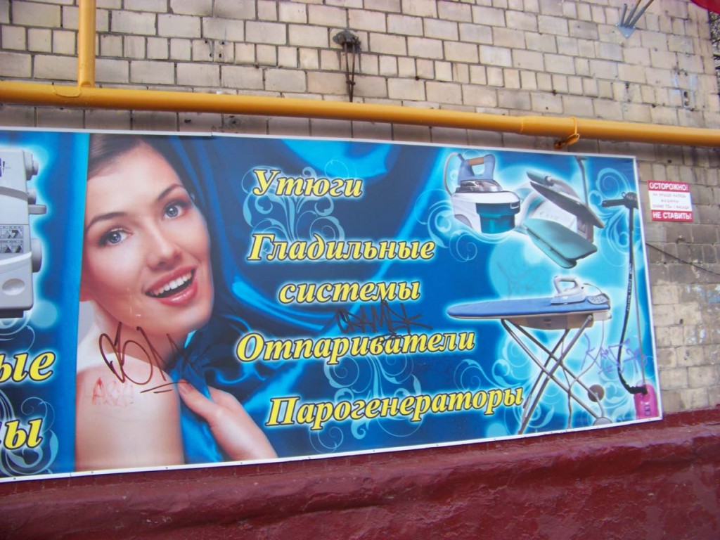 Bügeleisen, Bügelbrett und noch mehr mit Bügel…das ist, was das russische Frauenherz begehrt. Und wehe wenn nicht…mir wurde neulich auch vorgeworfen, das wir Frauen aus dem Westen alle viel zu feministisch wären und das ist ja wohl keine schöne Eigenschaft (O-Ton Mann: I don’t like this!) . Nö stimmt- ich mag das auch nicht, vorallem wenn mein „Nein“ schon als äußert emanizipiert angesehen wird. Zurück zum Plakatt – bei mir regt sich leider nichts in Richtung Freude wenn ich ein heißes Eisen und Wäscheberge sehe und ich denke, dass das vielen anderen genauso geht. Aber immerhin erklärt dies das doch noch recht tradierte Bild von „Wie es zu sein hat“. Meine Gastbabuschka spürt auch, dass ich so gewisse Probleme mit „fraulichem“ Ordnungsverständnis habe, aber sie hat sich schon langsam daran gewöhnt, dass ihr Knopf (mein neuer Spitzname) eher zu chaotischen Aufbewahrungs- und Ordnungsidealen neigt. Aus Liebe durfte ich heute deswegen eine ganze Schüssel Buchweizen mit Milch auslöffeln und ich sage euch, dass will ich nie wieder…Deswegen begebe ich mich jetzt in einen Park mit viel Eis und wenn ich heute Abend zurückkomme, dann erwartet mich immer dieser die fantastische Kreuzung aus Lenin und Lomonossov: